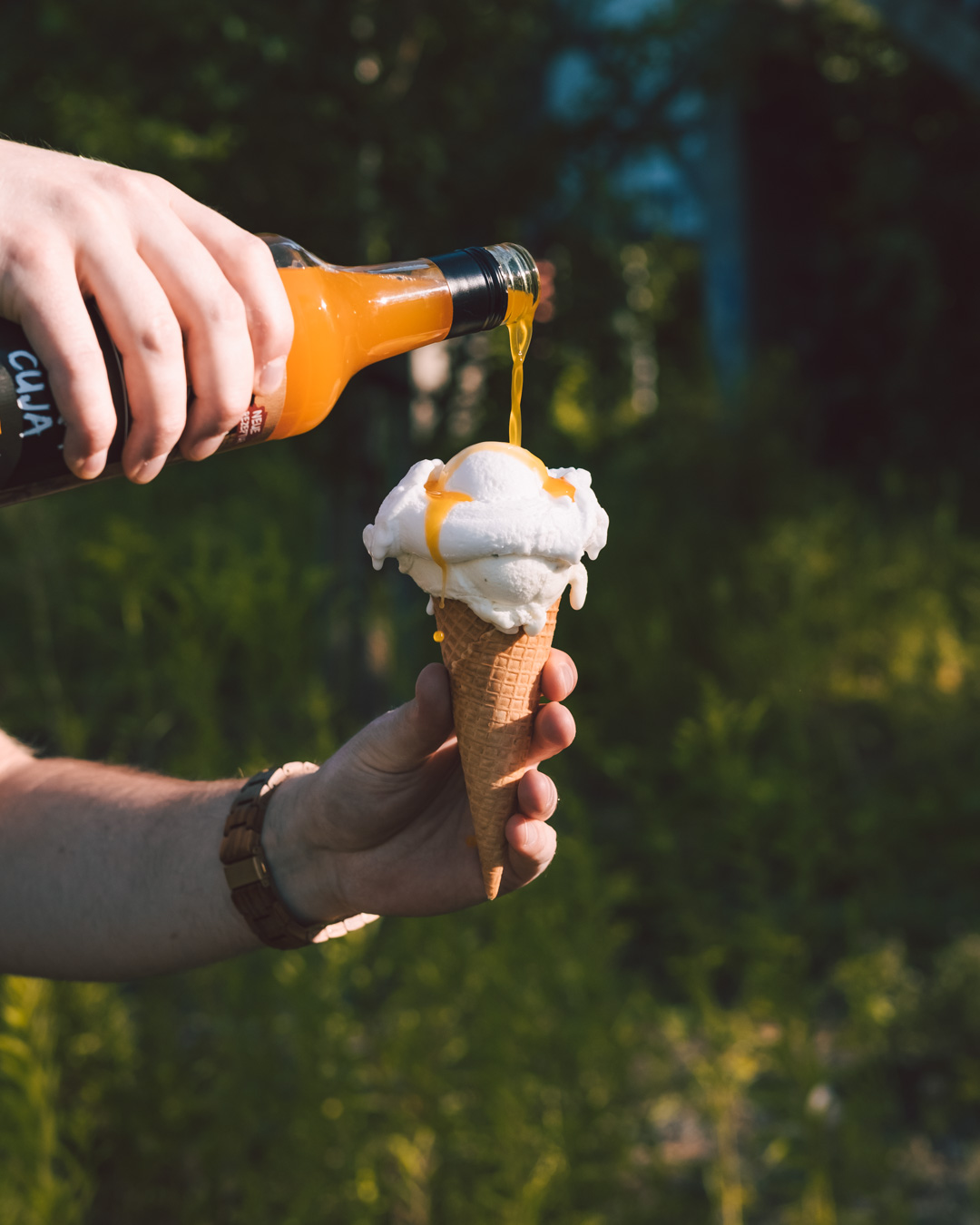 VIELSEITIG – Gut gekühlt als Shot, auf Eis als Longdrink oder auf Dessert als Topping. Der Maracuja Likör schmeckt unfassbar gut, egal, wie ihr ihn genießt.